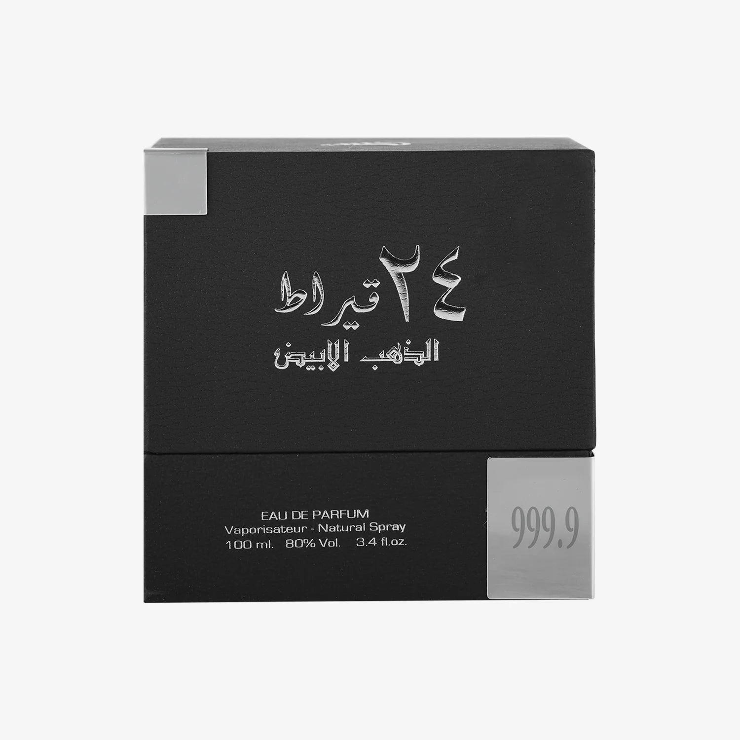 24 Carat White Gold by Lattafa Perfumes is a Amber fragrance for women and men. Top notes are Bergamot and Orange Blossom; middle notes are Lavender, Nutmeg, Pink Pepper and Geranium; base notes are Vetiver, Tonka Bean and Agarwood (Oud).