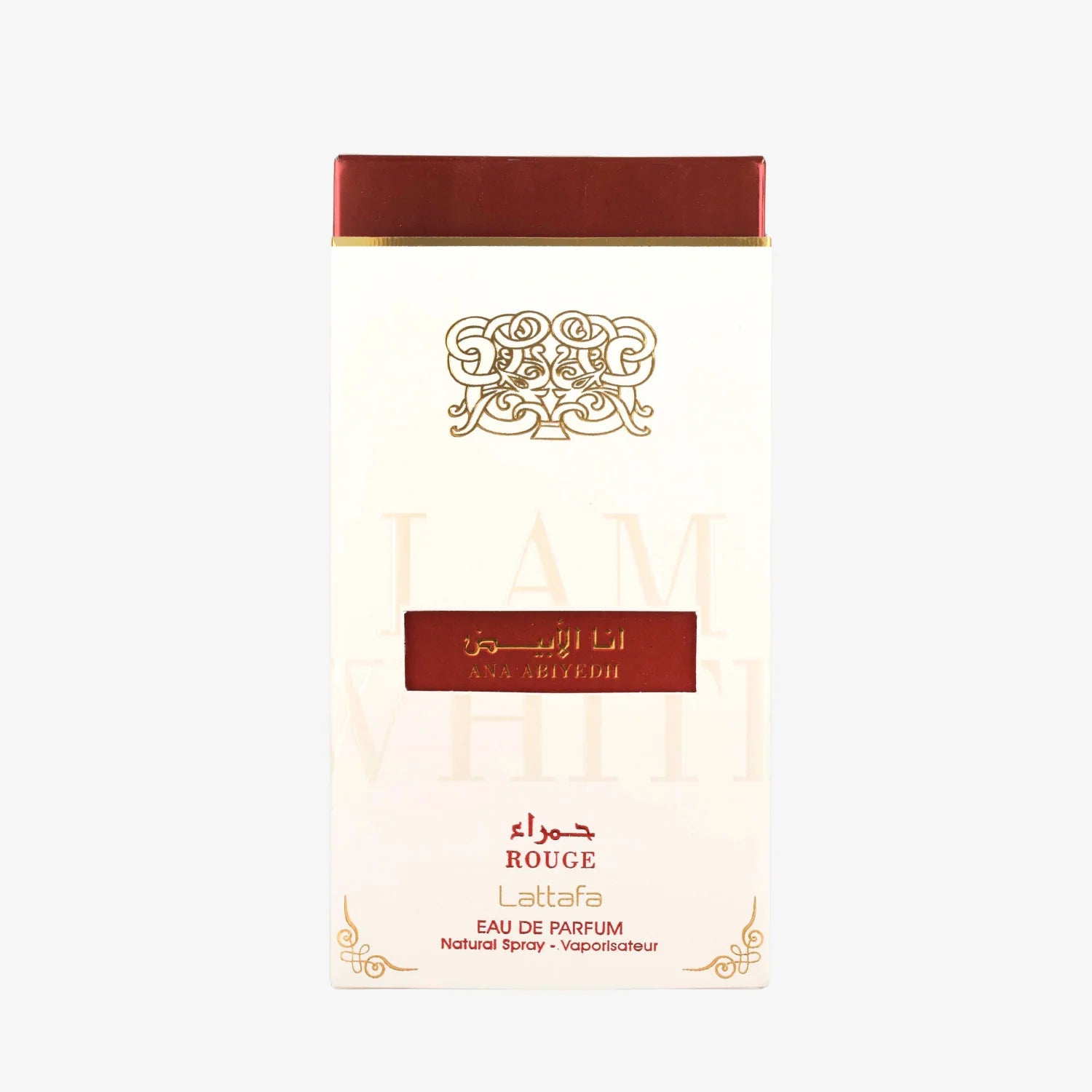 Perfume Ana Abiyedh Rouge Eau de Parfum by Lattafa is a soothing, harmonious perfume with amber, saffron and ambergris. The top note opens the fragrance warm and spicy with bitter almonds and saffron. The heart note forms jasmine and cedar, followed by musk, wood and ambergris in the base. A great and unusual perfume, with a subtle sweetness that perfectly interacts with the salty ambergris and spicy saffron. The perfume is suitable for both everyday and evening use.
