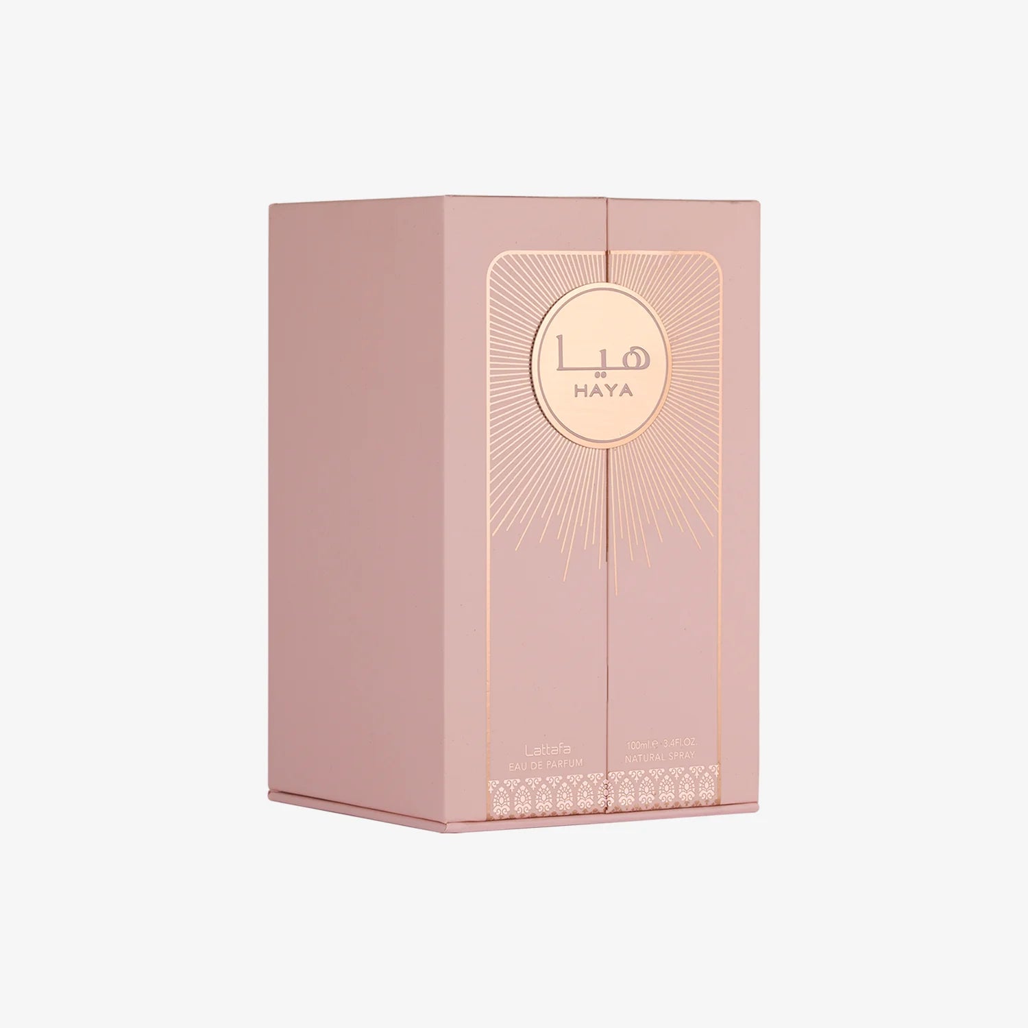 Haya by Lattafa Perfumes is a fragrance for women. This is a new fragrance. Haya was launched in 2022. Top notes are Champagne, Strawberry, Rose, Tangerine and Blood Orange; middle notes are Gardenia, Jasmine and Vanilla Orchid; base notes are Amber, Sandalwood and Chestnut.